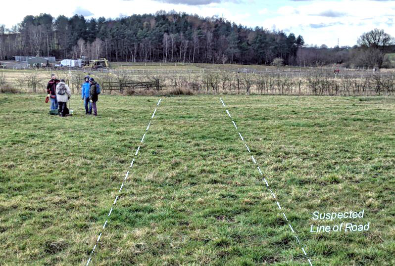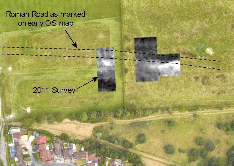 As you can see the result is quite significant. In 2011 we did get a positive reading from our scan, but the result was not strong enough for us to be certain it was the road. This result however, which seems to be on an alignment with our previous result (and not far from the 1849 OS map marking), gives us great confidence that this is in fact the road. Jim's research has revealed that this field is referred to as Rough Field on the early tithe map. In the 19th century antiquarian Rev. Sibson described the road here as being made of "large pieces of white freestone covered with gravel". If our result is showing the road, it would make for a great excavation. Getting permission to dig though, will be another matter as the land, now being owned by the LWT, will naturally have restrictions on its use. However there is a chance as we have worked with them before on their Kirkless site in Higher Ince, so fingers crossed (more details on our blog site here).