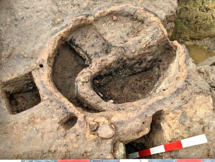 Our first Urn is also now ready to be lifted, having had almost all its internal material micro-excavated out. A layer of material has been left in to help support the vessel which is now looking quite fragile. The material has been taken to the Bolton Archive facility for processing with the rest of the cremated bone from the site.