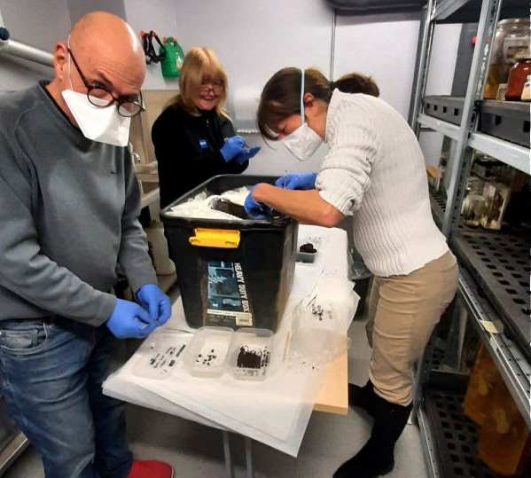 Although we are in the closed season for digging, work continues at the Bolton Archive Facility. This is where all the cremated bone and pit fill material is being stored. Last year Chris Drabble put together a comprehensive procedure for washing, cleaning and drying the bone so that it can be sent off for analysis. This has allowed volunteers to come to the Facility over the winter months to carry out this work. We've also been finishing the micro-excavation of Urn1 which we removed from site at the end of last year (shown here working on it are Tim and Jan McAvoy and Isabel Vaudrey). The bone from feature F13 (one of our un-urned pits) was complete before Christmas and duly sent off for analysis. Osteologist Dr Sam Walsh at UCLan has been selected for this work and we have now received the results from this first batch. They are quite spectacular with almost 70% of the bone fragments being identified. Included in the assemblage are teeth and pieces of petrous (sections of the skull) which have enabled Sam to identify the person as a young adult. There wasn't enough though to estimate the sex of this individual.
