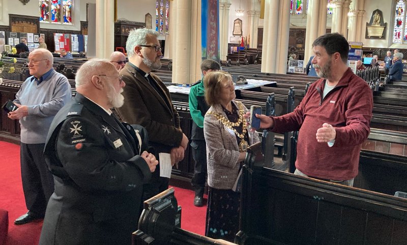 The event was opened by Mayor Jenny Bullen, the Rev Roland Harvey and St John’s Ambulance President Ian Bithell (in the background Mervyn Reeves, the event organiser, always on hand to help with any issues). Chris was able to spend some time explaining our work to them.