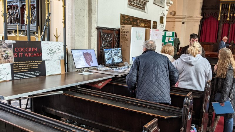 Patrick was also on the programme of talks with a presentation of our fascinating four year project. On the Saturday I was able to join them adding information about Roman Wigan and our long term quest to find the Roman roads around the town. This, together with a rolling presentation of our Parish Church Tower project, attracted a lot of attention to our stand in the afternoon.