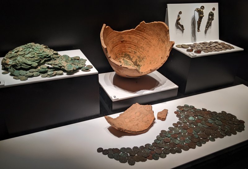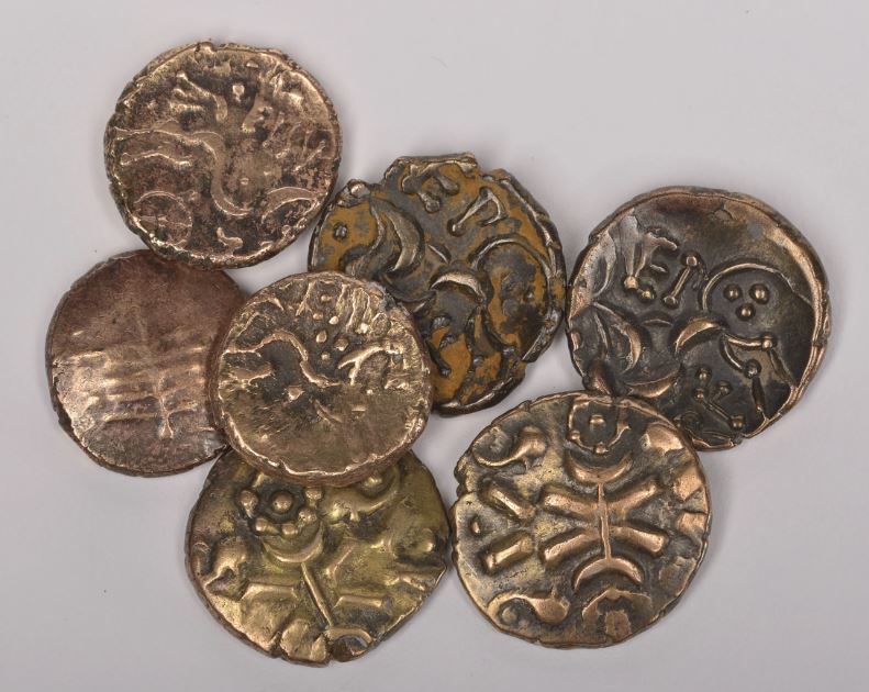 For me one of the most fascinating was the Malpas hoard which was found by detectorists in 2014. Significantly it consists of coins from before the Roman invasion, 28 silver Roman (Emperor Tiberius) and 7 gold British from the Dobunni and Corieltauvi tribes. One theory is that they were linked to Caratacus, the British chieftain who fled to the Brigantes after his defeat against the Romans (only to be handed in by Queen Cartimandua).