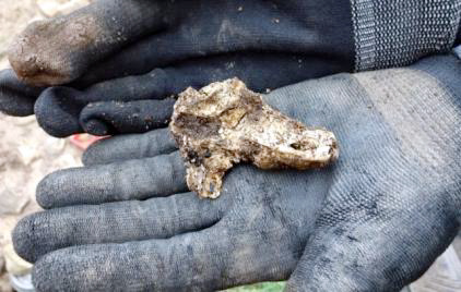 Our next major burial came from the northeast side of Trench 3a in a pit lying under two large flat stone slabs. We managed to fill two large plastic boxes with cremated bone from the bottom of the pit. This included some large pieces and, with only half of the pit excavated so far, we expect more when we remove the rest of the bone next year.